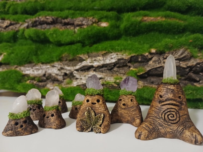 I started learning more about sculpture and enjoyed the mirth of other creators as they experienced “cute aggression” where you love something so much you just want to squeeze it. See You Tube creators like KaypeaCreations, Carys Cuttlefish and PricklyAlpaca for a bit of what has been inspiring me. I called my creations “Little Dirtbags” because they were brown and looked like they were made of Earth. I gave them crystals to decorate them and a bit of moss and told people that they could tell them their problems and they would compost them. I found so much joy in helping people laugh and let go of some of the heavy feelings we are all holding. The joy was the gentle healing that was needed, for me as a creative, and for the people who chose to take them home. A very different kind of Earth healing, but Earth healing all the same.